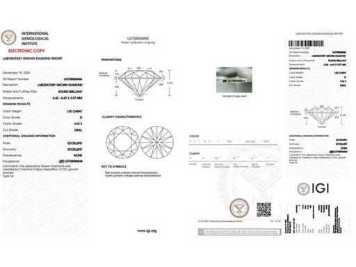 Toate diamantele sunt prevăzute cu o inscripție laser cu numărul de certificat corespunzător, care garantează autenticitatea fiecărui diamant. Caracteristicile de calitate menționate sunt preluate integral din certificatul oficial însoțitor și oferă transparență și securitate completă în timpul achiziției tale.