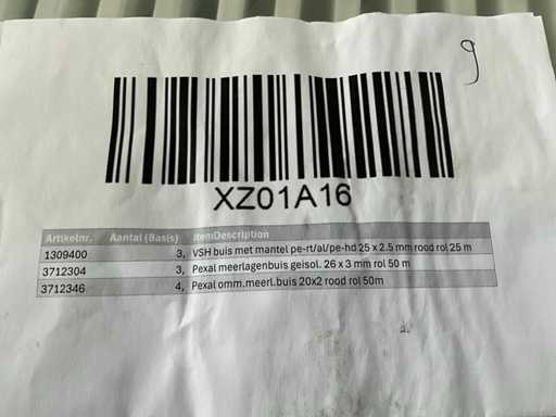 Inclusiv: 3 role de țeavă multistrat izolată Pexal 26x3mm 50M pe rolă, 3 role de țeavă VSH cu jachetă 25x2,5mm 25M pe rolă, 4 role de țeavă multistrat Pexal 20x2mm 50M pe rolă.