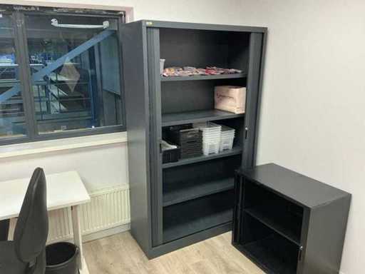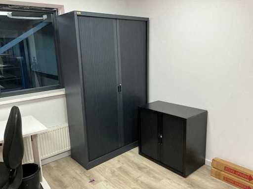 3x dulapul de dosare Utopia 120x45x198cm, 1x dulap de dosar jos, 2x masă de birou 120x60cm, 2x scaun