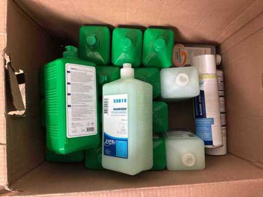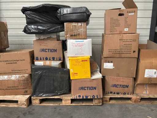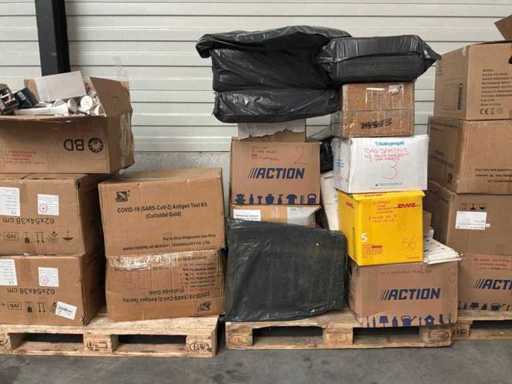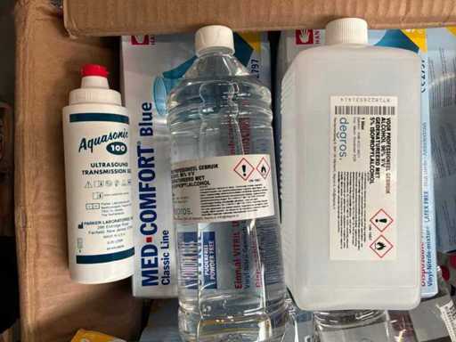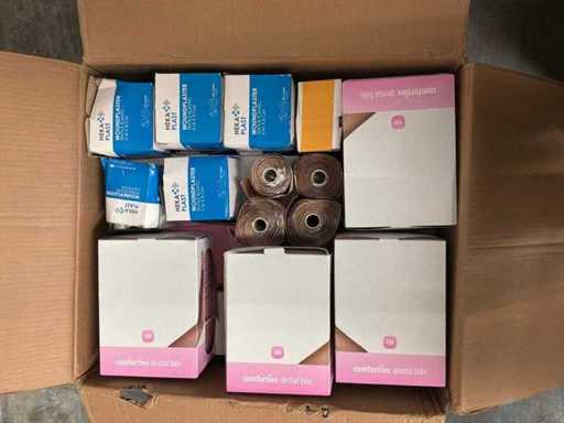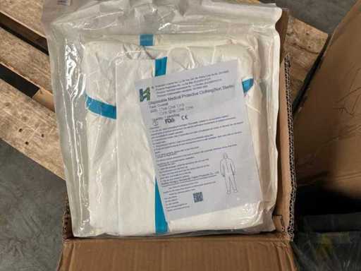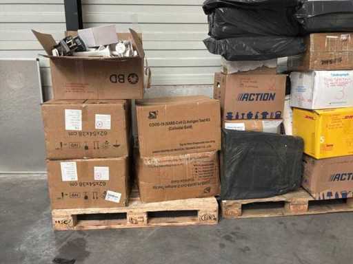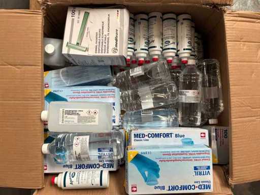 3X palet cu diverse materiale medicale. Constă din: salopete de lucru, ochelari de protecție, absorbante ortopedice, găleți pentru ace, diverse dezinfectante. CONȚINUTUL POATE FI VĂZUT ÎN FOTOGRAFII!