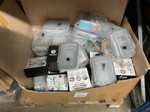 Constă din: cleme pentru mâncare, cutii Tupperware, rafturi pentru condimente. Am împachetat peste 3 cutii.