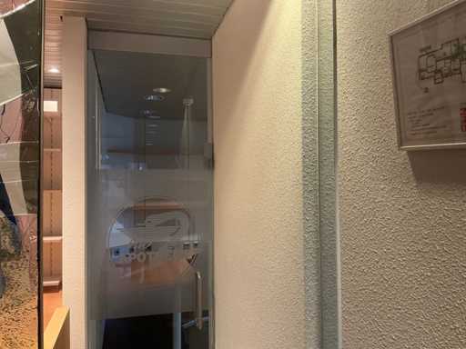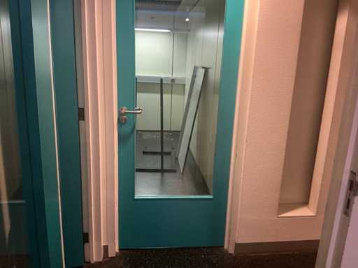 Număr de uși; 1 ușă glisantă; 1 ușă mare batantă; 5 uși albastre fără rame; 1 ușă albă cu sticlă; 6 uși cu rabaturi; 2 uși înguste din sticlă