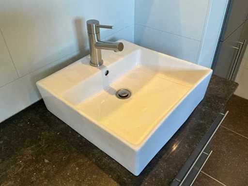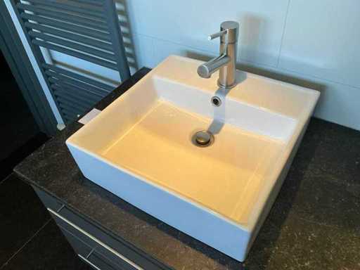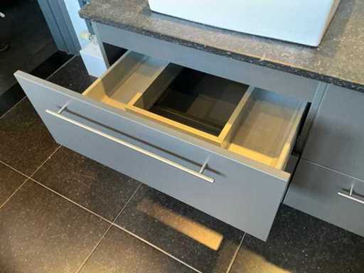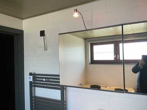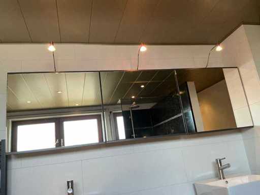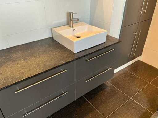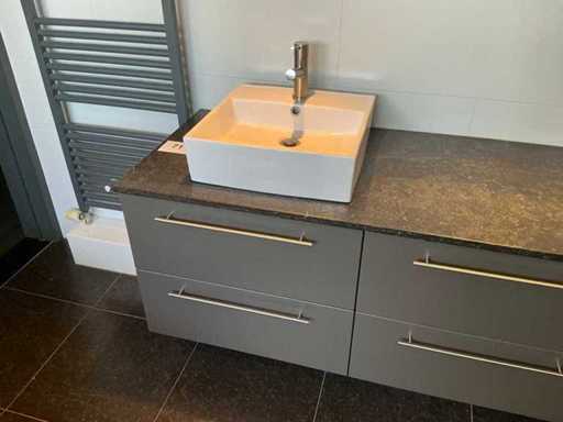 Echipat cu 2 chiuvete și 5 sertare glisante. Completată cu dulap oglindă cu dimensiuni de aproximativ 210 x 20 x 60cm. Prin demontarea și mutarea mediului de cupru. Situat la etajul 1.
