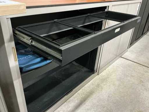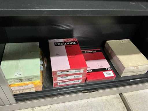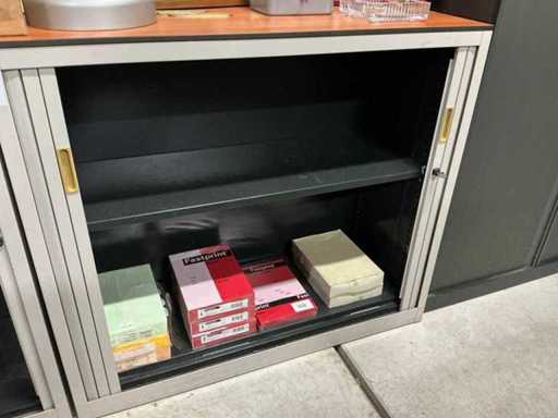 3 piese cu rafturi, sertar cu dosare și diverse conținuturi