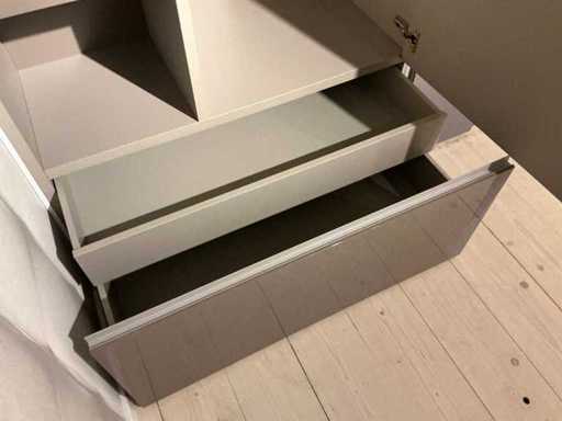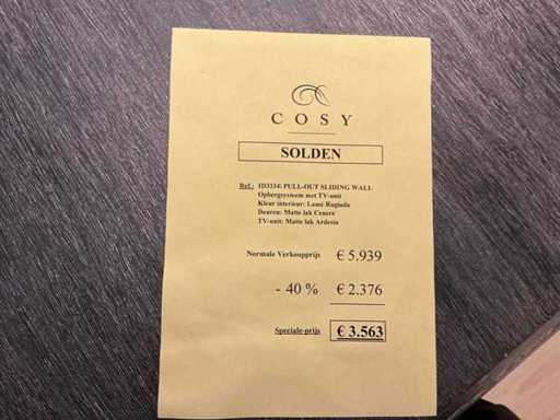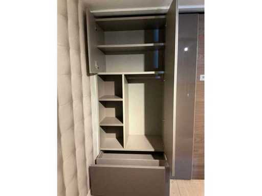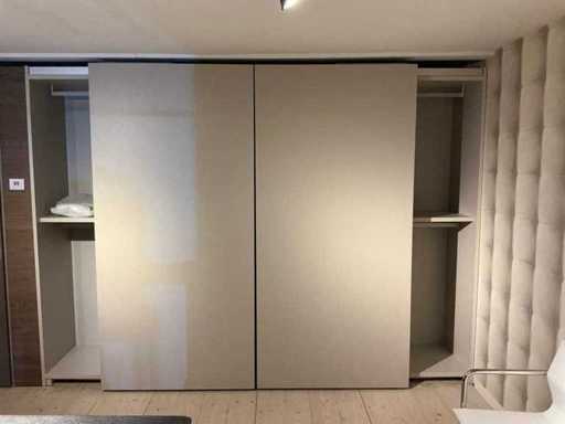 Echipat cu 5 uși, 2 sisteme glisante de tip retragere, diverse compartimente de depozitare deschise și 2 sertare, dimensiune totală: 490x55x235cm, poate fi demontat profesional din cupru