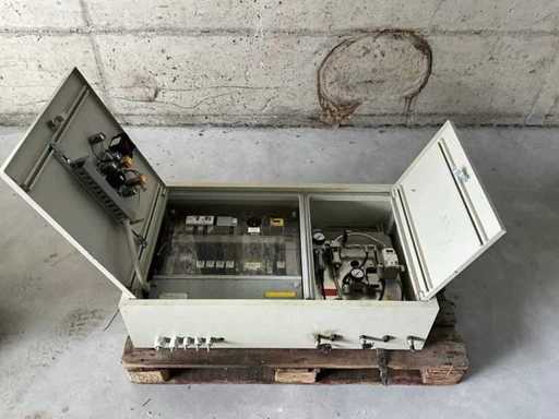Conform fotografiilor, greutatea estimată. Dulap electric la presă de streapă. Separator al industriei de canalizare.