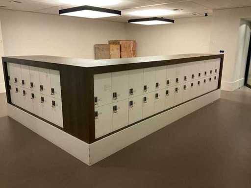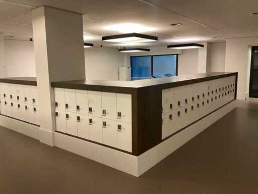 Aproximativ 8 dulapuri per dulap. Incluzând dulapurile cu înălțime joasă, un total de aproximativ 240 de dulapuri
