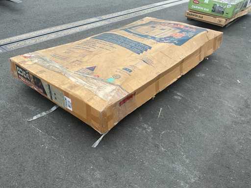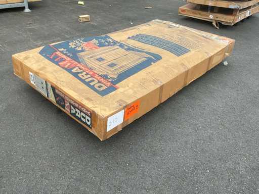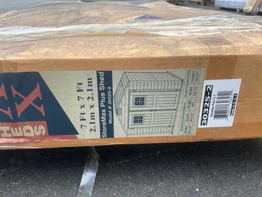 Rășină de vinil (ignifug) cu nervuri interioare și coloane din oțel zincat; dimensiuni externe aprox. 210 × 210 × 231 cm; dimensiuni interioare aprox. 195 × 195 × 183 cm; uși duble aprox. 135 × 180 cm; grile duble de ventilație în partea superioară și ferestre în uși; rezistent la rugină, putregai, lovituri, mucegai și insecte; coloane potrivite pentru cârlige sau rafturi; volum aprox. 6,95 m³