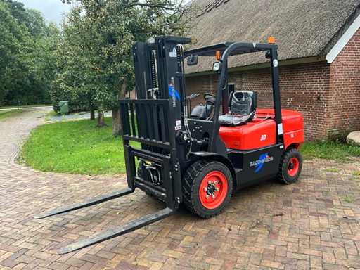Capacitate de ridicare 3,0 tone; Catarg cu 3 trepte de 4,5 m, deplasare laterală; Transmisie hidraulică (automată), lungime a furcii de 1,22 m; motor 36,8 kW, anvelope pneumatice; Baterie fără întreținere; Scaunul cu centură de siguranță și bară de siguranță. Lumină de avertizare.