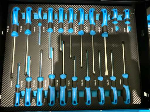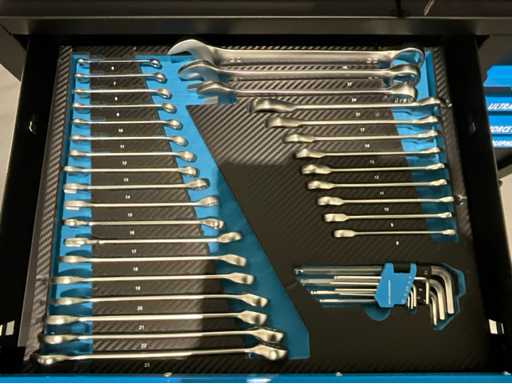 12 sertare, set de 269 de piese, 2 roți rotative și 2 chei. Toate uneltele esențiale de mână la îndemâna ta