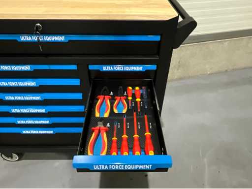 Echipament Ultra Force - cărucior pentru unelte, 12 sertare și 269 de unelte pentru piese