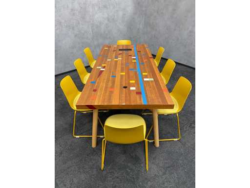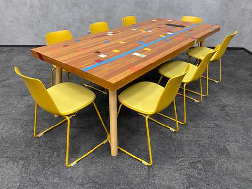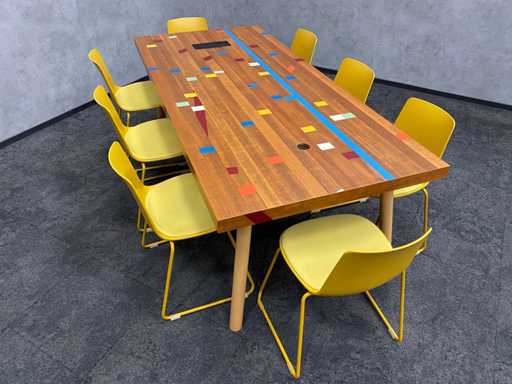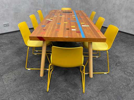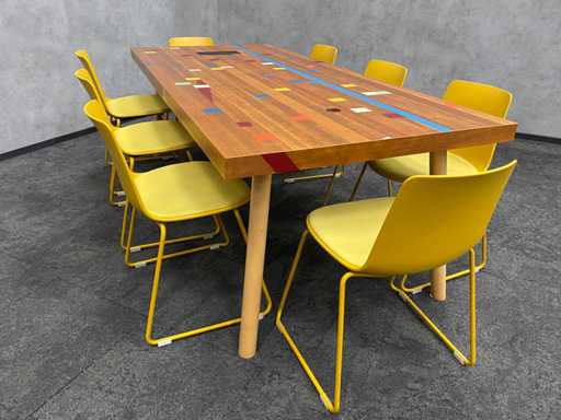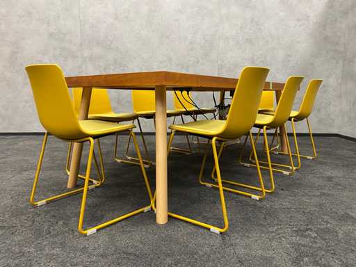 lot format din 8x scaun de conferință Enea Lottus. --- 1x Masă de design cu blat de podea de gimnastică, modul încorporat, intrare prin cablu.