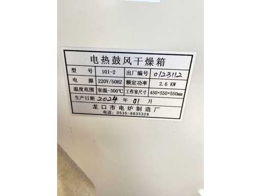 Cuptorul Model 101-2, încălzit electric, termostatic, cu uscare cu aer cald a fost produs în ianuarie 2024 și nu a fost niciodată folosit.