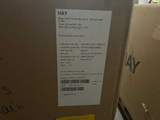 Canapeaua Hay Mag Soft, identică cu lotul 16, cu finisaje textile Divina Melange 1150 și cusături ton-per-ton. Confort excepțional și modularitate care permit configurații diferite. Produs nou în ambalajul original, gata de asamblat.
