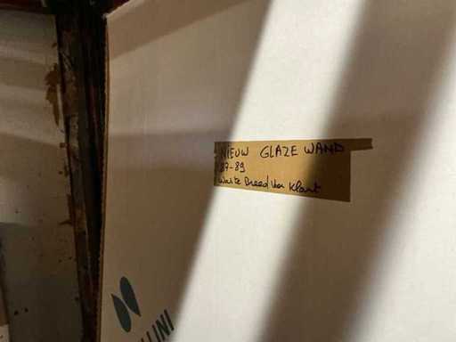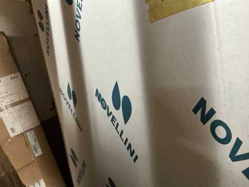 Fiind peretele de duș Novellini, ușa balamalei cu profil alb și peretele de sticlă nu este complet.