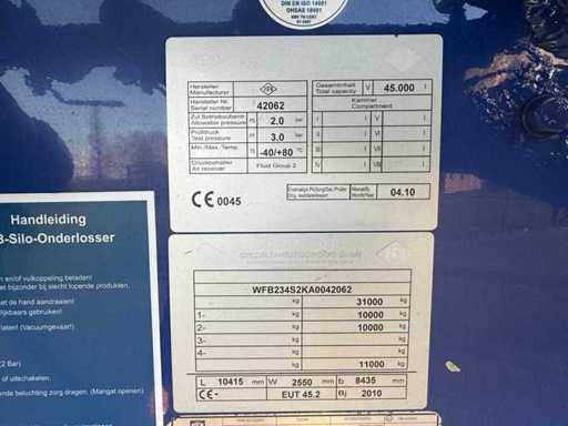 Feldbinder - Remorcă vrac - 2010 - EUT 45.2 - Remorcă cântărire - Oraș - Punte spate direcționată - 45,2 metri cubi - 7 compartimente - OL-28-BT