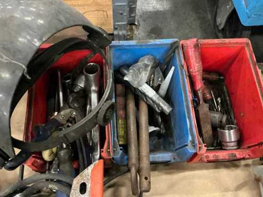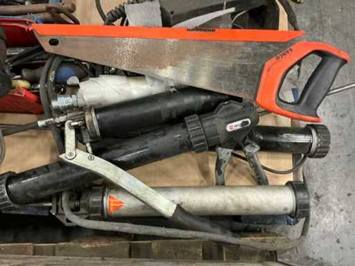Constă din ferăstrău radial cu braț FOX, polizor MAKITA, lampă de construcții, kit și pistol de unsare și diverse unelte manuale