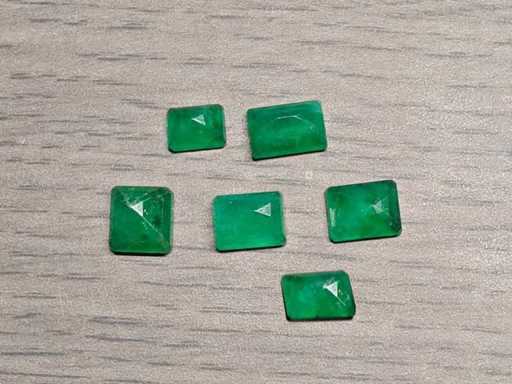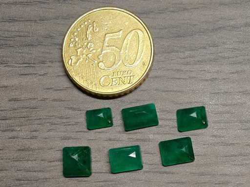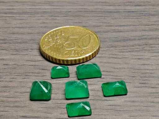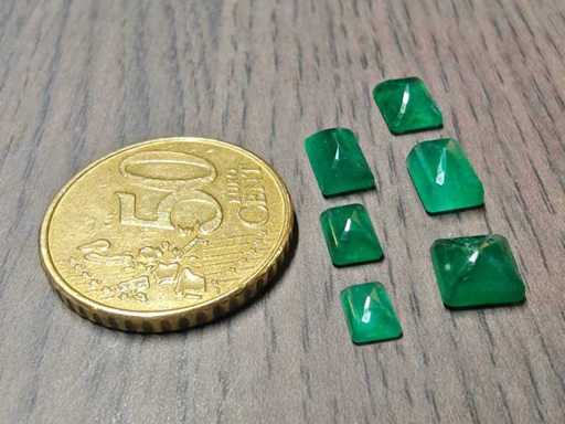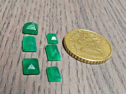 6 Smaralde naturale lustruite. 13,95 Cts, parcul de eliberare. Acestea sunt smaralde verzi naturale, netratate! Formă dreptunghiulară. Toate loturile noastre sunt expediate în cutii Fedex cu prioritate ridicată. Vei primi un cod de urmărire la scurt timp după ce ai plătit pentru loturile de licitație. De obicei, este expediat în 7-14 zile, iar livrarea se face în 24-48 de ore după aceea. Loturile sunt asigurate și plătite în avans de către vânzător. Nu este inclus certificat, va fi ambalat într-o cutie sigilată sau cu pietre prețioase. Nu este inclus certificat, va fi ambalat într-o cutie sigilată sau cu pietre prețioase. Moneda de 0,50 eurocent este doar pentru vizualizarea dimensiunii pietrei, nu este inclusă! Greutatea imaginii cu piatra prețioasă este folosită de o mașină profesională de cântărire pentru referință. Preț istoric de retail: 2100 €.