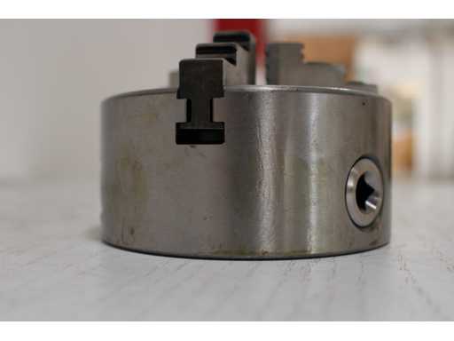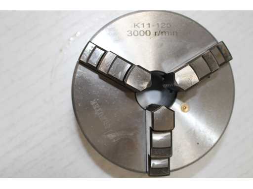 Chuck for self-centering lathe 3 + 3 jaws 125 mm, 3000 r/min, body in ground cast iron, closing with helical ring, concentric manual clamping, tempered jaws