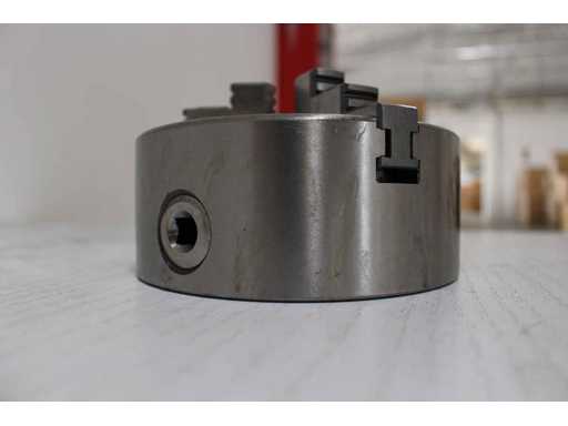 Mandrin pentru strung autocentrat 3 + 3 fălci 160 mm, 2500 r/min, corp din fontă rectificată, închidere cu inel elicoidal, prindere manuală concentrică, fălci călite