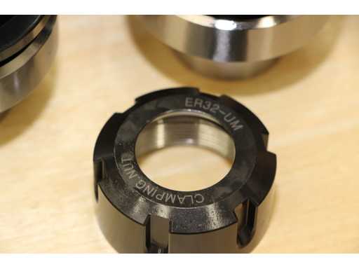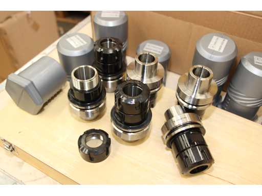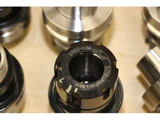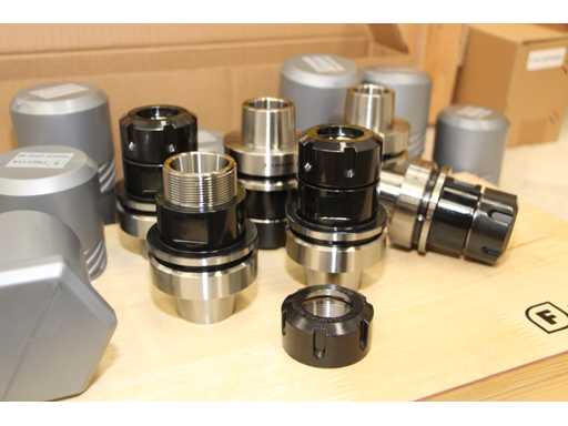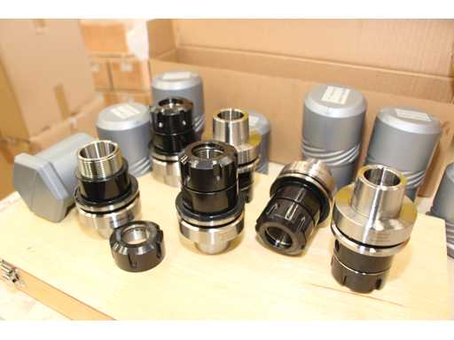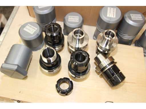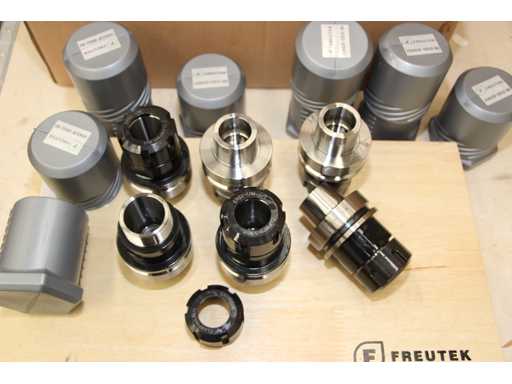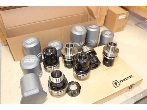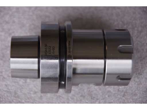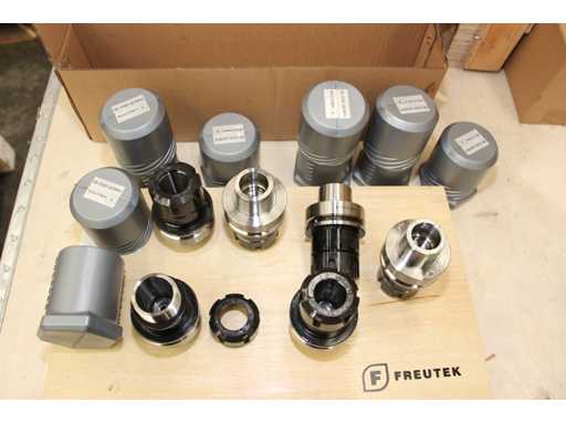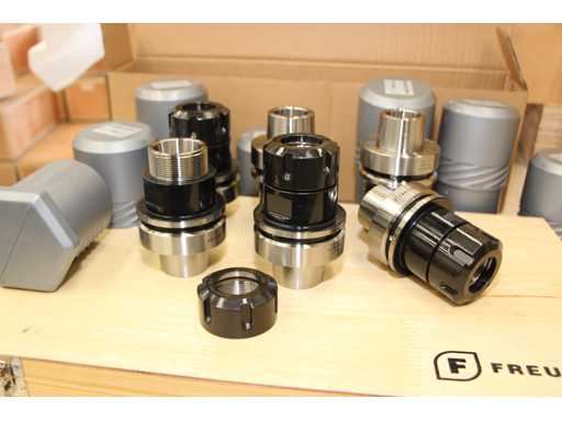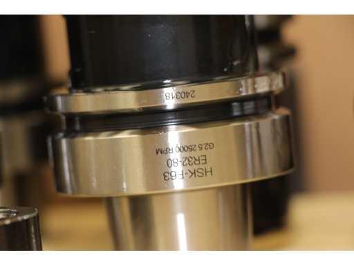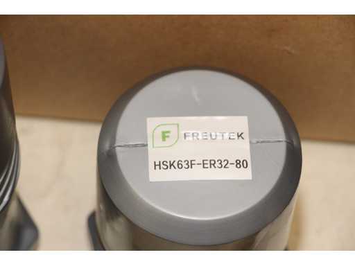 6 tool holders, brand Freutek type HSK63F ER32-80, balanced, up to 25,000 rpm, new packaged, lubricated in sealed bag and single pack.
