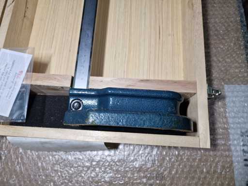 Compact mechanical/hydraulic vice, with face size: 101 x 48 mm, stroke: 0-125 mm, clamping force 36 kN (3528 kgf). Packaging size 600 x 220 x 180 mm. Item weight 27 kg