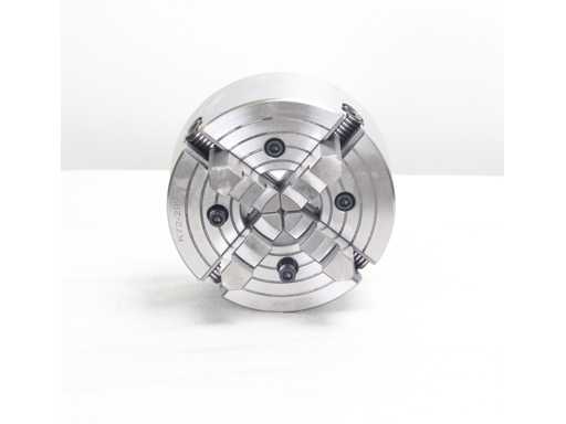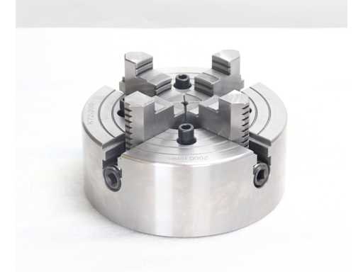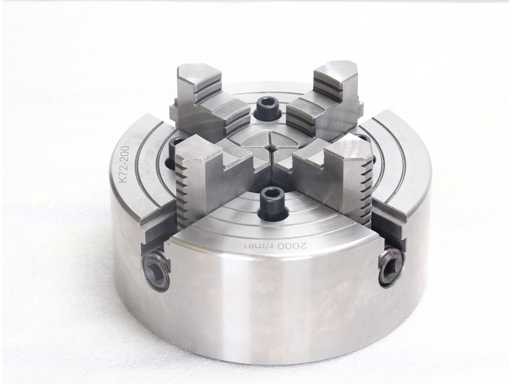Chuck diameter 200 mm with 4 independent jaws up to 2100 rpm. Hole 70 mm, screw distance 112 mm (4 - M10). Height 75 mm, with claws 107.5 mm. Item size 200 x 200 x 107.5 mm. Item weight 15 kg.
