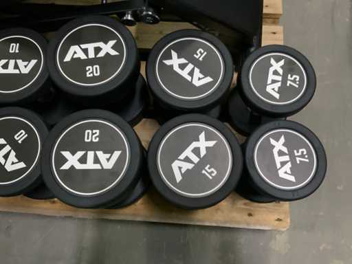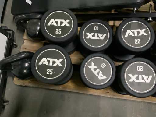 10x gantere de la 7,5 la 25 kg, 2x kettlebell (24 și 16 kg)