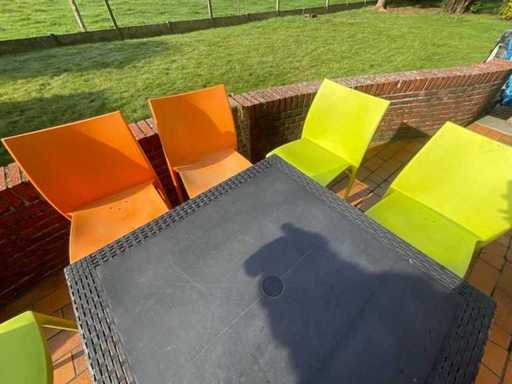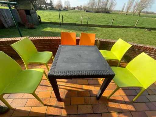Garden table set + 6 plastic chairs