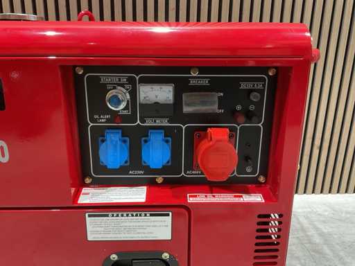Echipat cu pornire electrică; conexiunea 220/380; Putere 5KvA; Rezervor diesel de 16 litri; 1,65 rezervor de ulei; Extra silențios 70db; Disponibil; Neutilizat (Dimensiuni transport 760x500x650mm, greutate 100Kg)