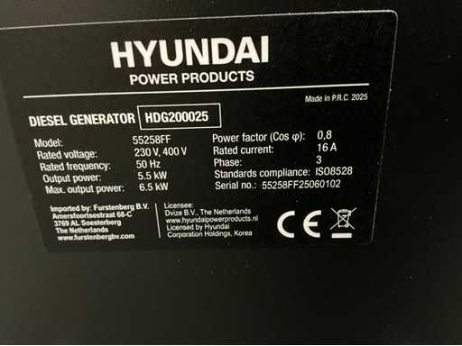 Generator diesel de urgență Hyundai HDG200025 2025 de 7,5 KVA