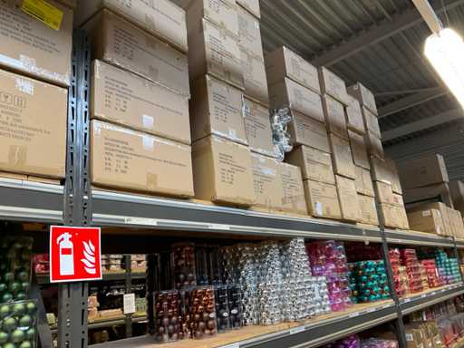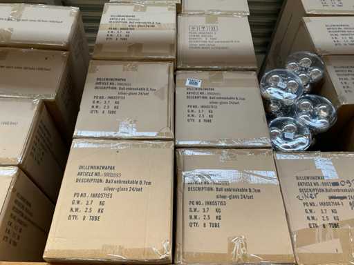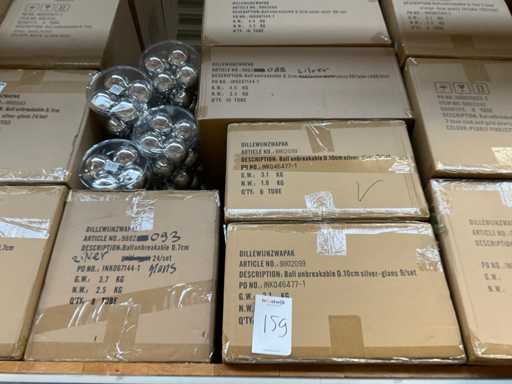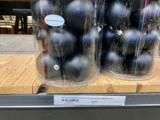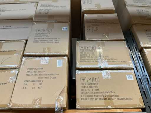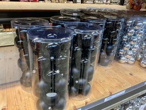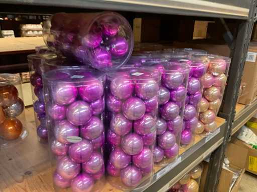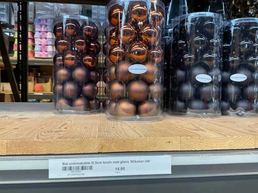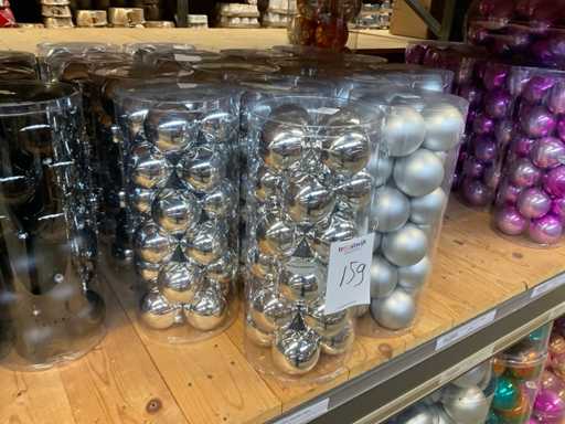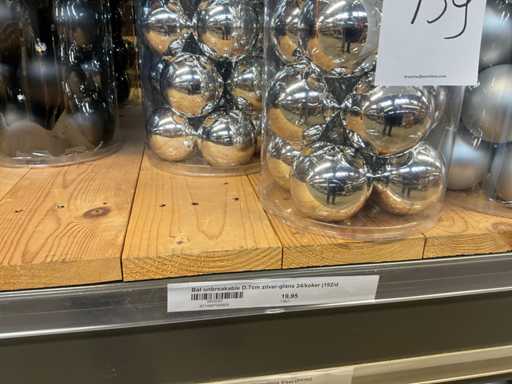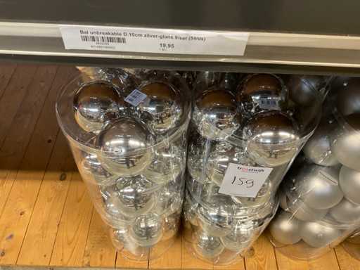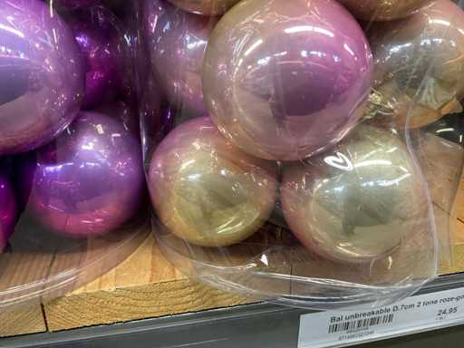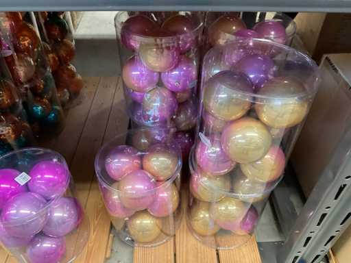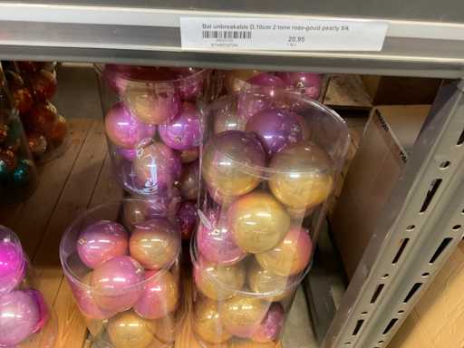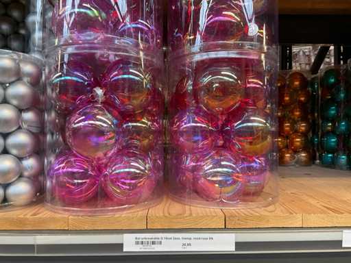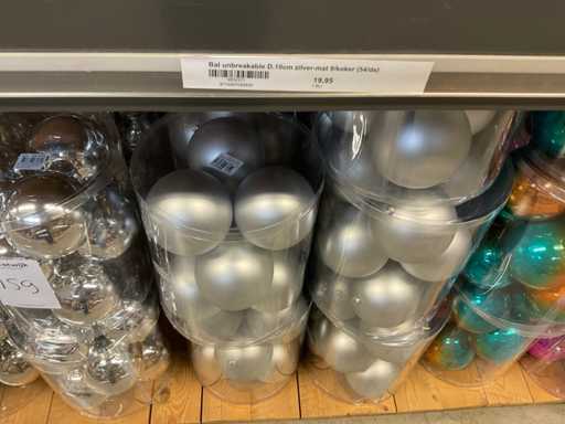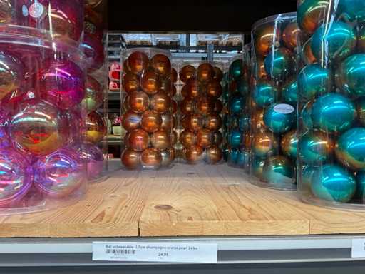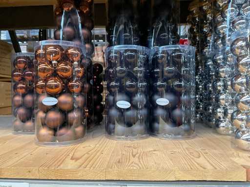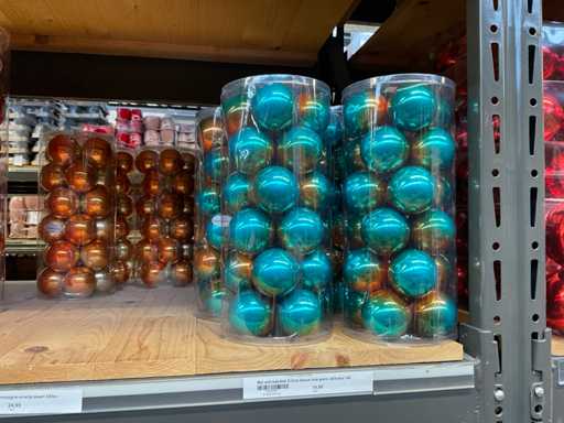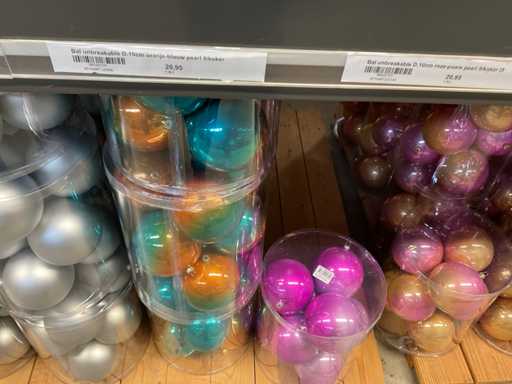 Constând din bile de Crăciun incasabile în diferite culori și dimensiuni, toate în 1 secțiune de raft.