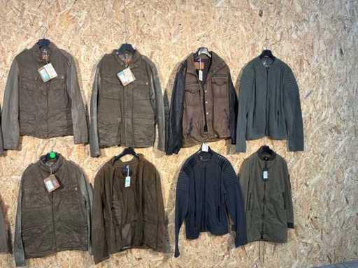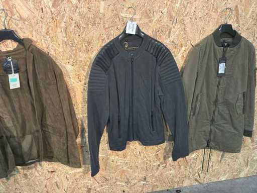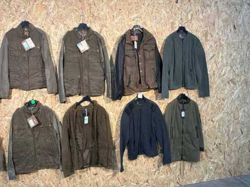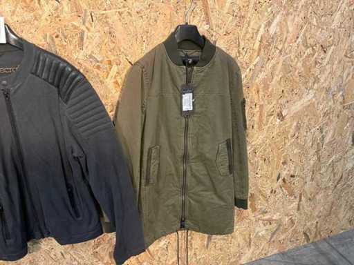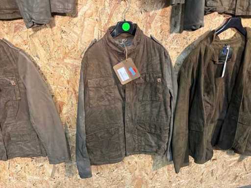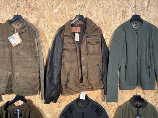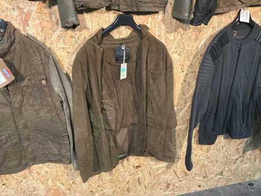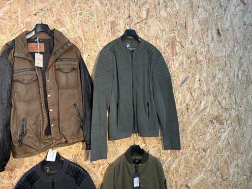 Diverse jachete de piele pentru bărbați în diferite modele, culori și mărimi.