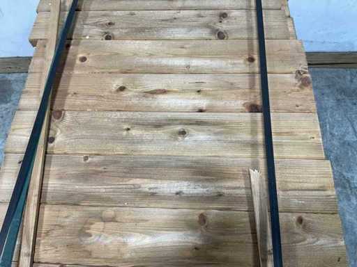 Grinzi din lemn moale cu dimensiuni de 30×100×600 mm, rindeluite în jurul complet (S4S) și realizate cu margini rotunjite (R3) pentru un finisaj curat și o prelucrare plăcută. Grinzile sunt impregnate sub presiune (KDI) și colorate maro, ceea ce asigură o durabilitate și o adecvare sporită pentru aplicații în aer liber.