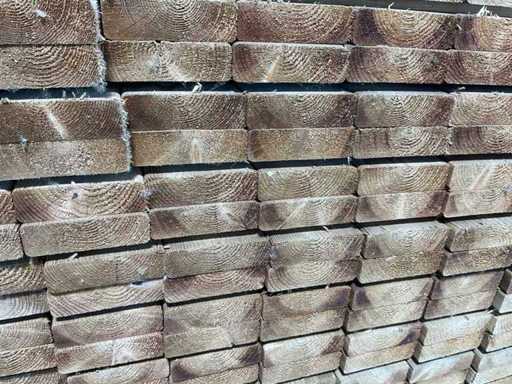 Grinzi din lemn moale cu dimensiuni de 30×100×600 mm, rindeluite în jurul complet (S4S) și realizate cu margini rotunjite (R3) pentru un finisaj curat și o prelucrare plăcută. Grinzile sunt impregnate sub presiune (KDI) și colorate maro, ceea ce asigură o durabilitate și o adecvare sporită pentru aplicații în aer liber.