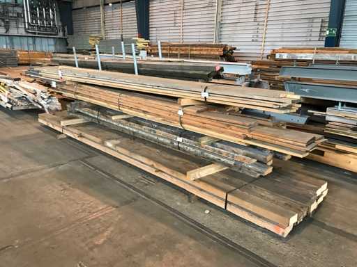 un lot de grinzi și scânduri, inclusiv scânduri de gard din brad Douglas; Grinzi de molid și pin