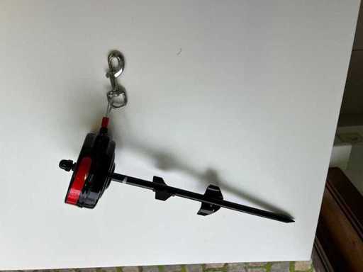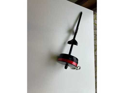 Ground spike with retractable dog leash, suitable for safely securing a dog in the garden or on the move. The metal pin is screwed firmly into the ground.