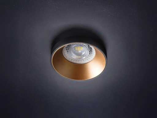 sealing IP20, product color sand gold black, dim. Ø 73 x 42mm, installation diameter ø 63mm, material aluminum, fitting GU10, including ceramic lamp holder, bulb light source not included, suitable for indoor, one bulb input, voltage 220-240V, SKU 00844 SKU353