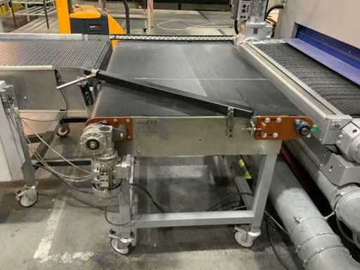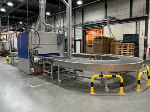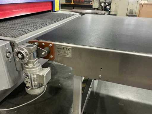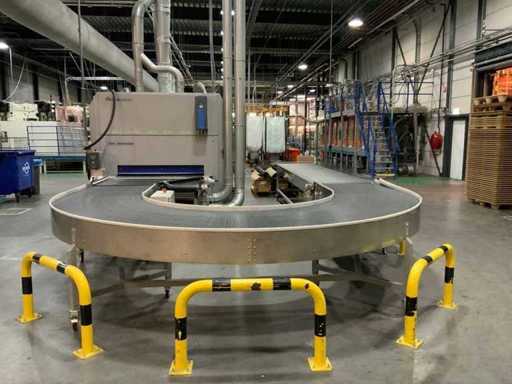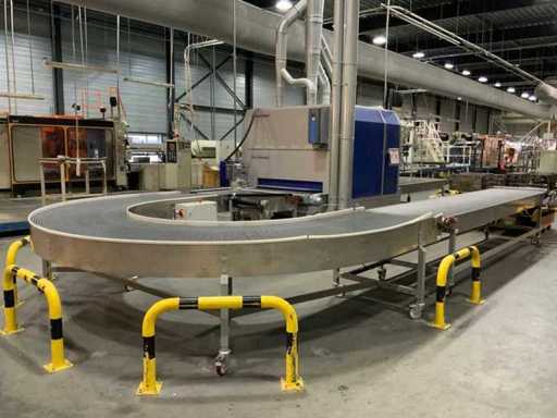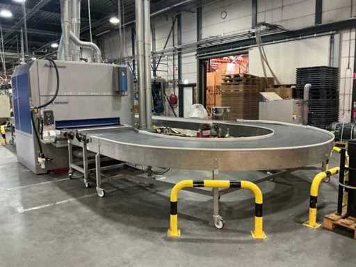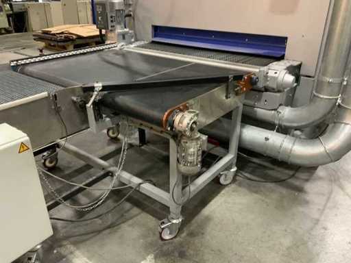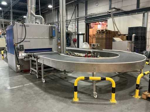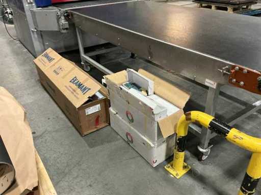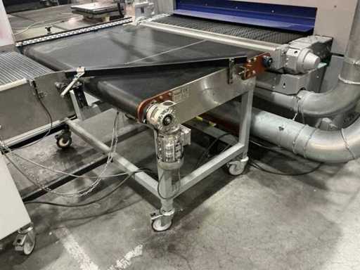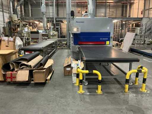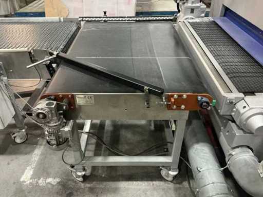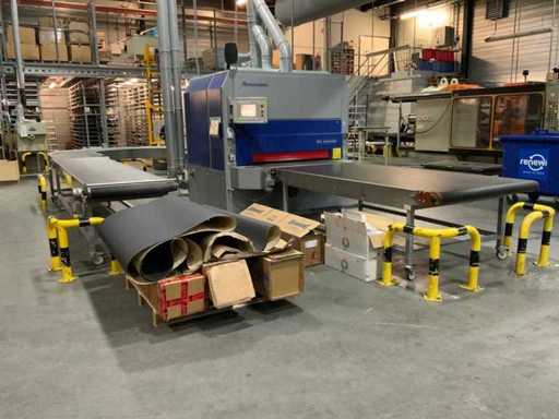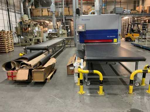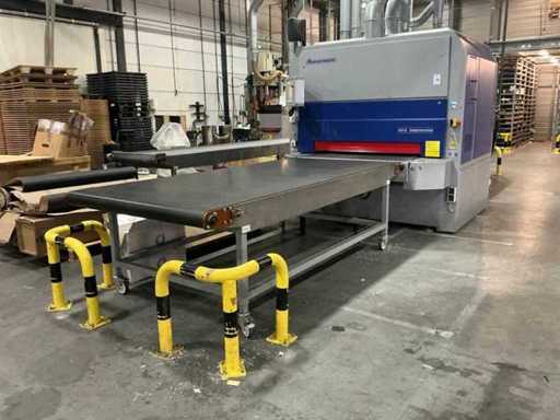 Echipat cu bandă mobilă de alimentare pentru cusut 2016 de 300cm, lățime a curelei: 135cm, sistem de transport mobil de cusut din 3 piese cu îndoitură. Banda transportoare de cusut drept: 485x80cm, curba lanțului de cusut 80cm, lățimea totală 388cm, banda de aliniere 135x100cm. Sunt disponibile curele și perii suplimentare de șlefuire. Motoare pe paleți și piese în ladă