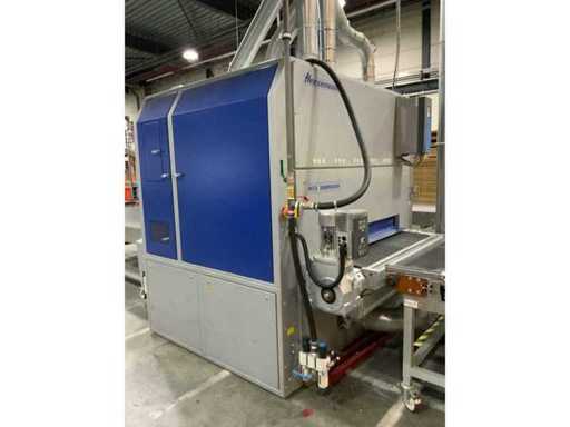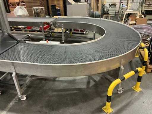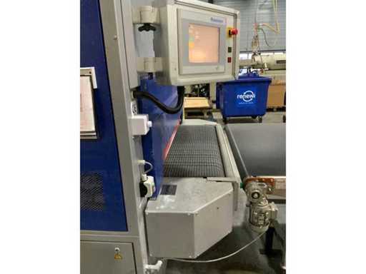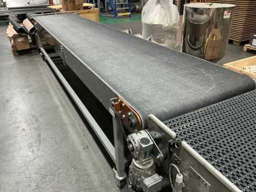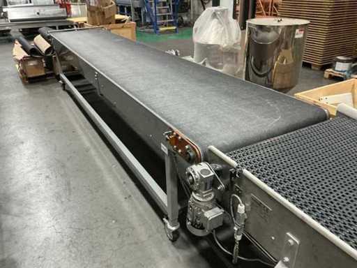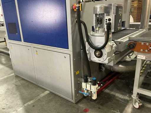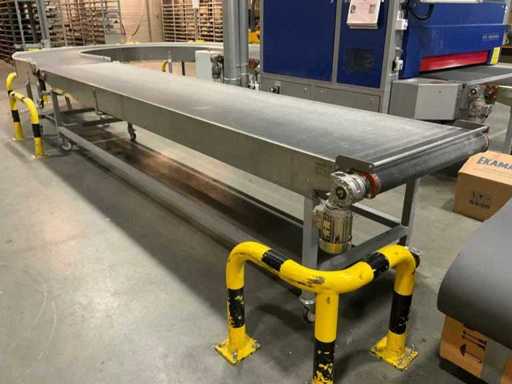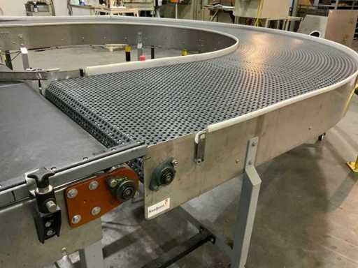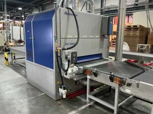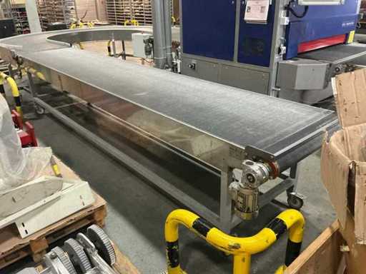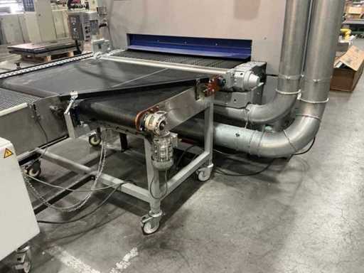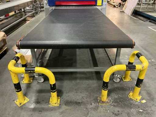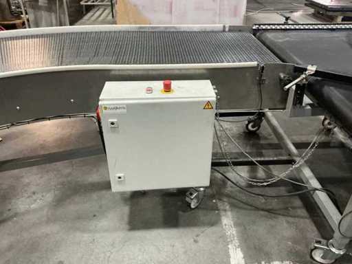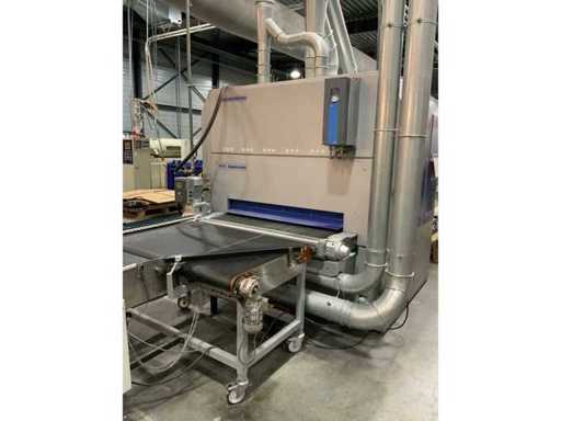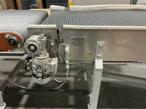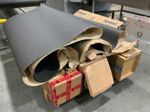 Echipat cu bandă mobilă de alimentare pentru cusut 2016 de 300cm, lățime a curelei: 135cm, sistem de transport mobil de cusut din 3 piese cu îndoitură. Banda transportoare de cusut drept: 485x80cm, curba lanțului de cusut 80cm, lățimea totală 388cm, banda de aliniere 135x100cm. Sunt disponibile curele și perii suplimentare de șlefuire. Motoare pe paleți și piese în ladă