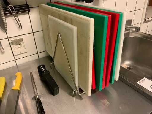 Un lot de diverse cuțite, suport magnetic pentru perete și plăci de tăiat în raft