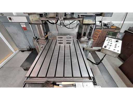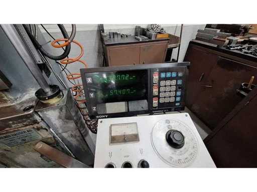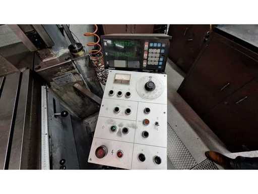 feed range - table:15 - 280 mm/min; rapid traverse Z-axis:530 m/min; spindle bore diameter / taper:MT4 (Morse) mm; spindle bore diameter:max. 230 mm; spindle stroke - max.:170 mm; spindle speeds low range:10 U/min; spindle speed high range:2000 U/min; vertical feeds of spindle head::0.02 - 0,2 mm/r feed steps:6; Main spindle capacity:3 kW; total power requirement:4,2 kW; weight of the machine ca.:4