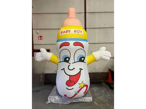 Descriere Această biberonă gonflabilă poate fi folosită atât pentru nașterea unui băiat, cât și a unei fete, deoarece bannerul este interschimbabil. Material din nailon 3 metri înălțime cu suflant încorporat Include geantă de transport, frânghie de sentină, țăruci în punga cu hering și bannerul "Baby Boy" și "Baby Girl".