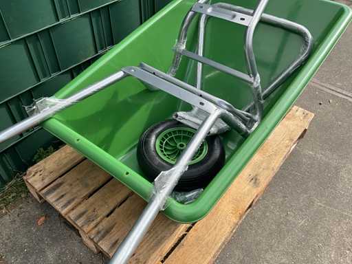 Roabă cu recipient din plastic cu o capacitate de 160 litri. Baza galvanizată este solidă, iar roaba este echipată cu o jantă cu anvelopă pneumatică; 4.80/4.00-8; tub de nailon; Inflație maximă 2.0 bar viteză Maz 20 KM/H; Dispune de roabă de 160 litri; Cadru galvanizat robust; Capacitate a recipientului din plastic extra rezistent: 160 litri; Livrat ca kit, vezi ultimele fotografii