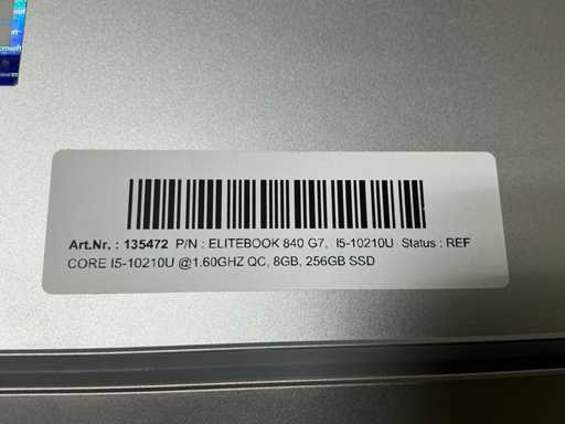 Laptops, ELITEBOOK 840 G7, CPU: Intel Core i5-10210U @1.60GHz QC, MEM: 8GB, SSD : 256GB, damage on right corner, no adapter ( cleaned and tested ) [ID: 135472]