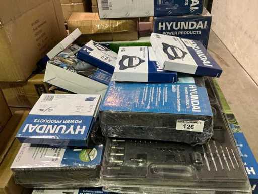 Totul pe un singur palet, diverse unelte Hyundai Powertool, unelte manuale, utilaje de grădină și parc, etc.