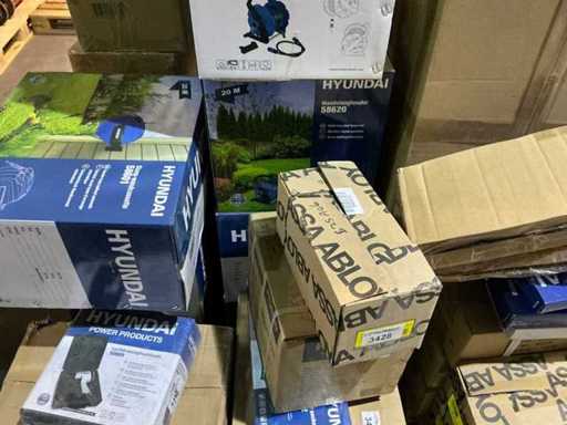 Totul pe 2 paleți, diverse unelte Hyundai Powertools, unelte manuale, utilaje de grădină și parc, etc.