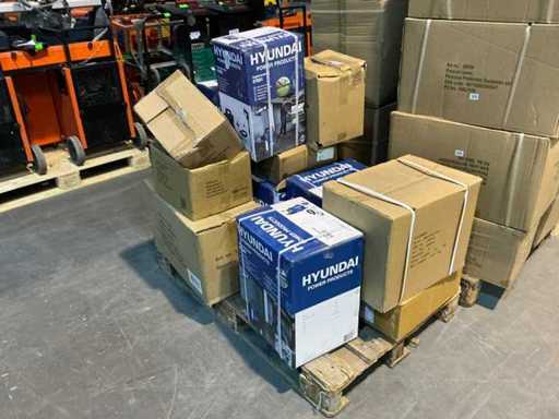 Totul pe 2 paleți, diverse unelte Hyundai Powertools, unelte manuale, utilaje de grădină și parc, etc.