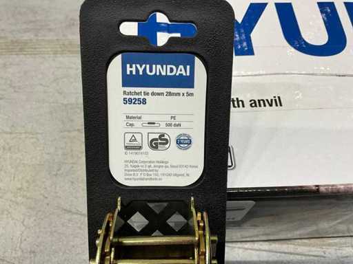 Constă din: 60x Hyundai Ratchet Strap 59258, 28mmx5m și 46x Hyundai 59807 menghină de bancă 100ml