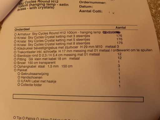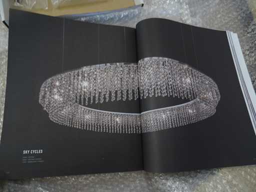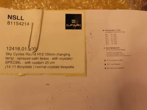 Material: Cristal; Culoare: alamă satinată; Număr de surse de lumină: 12; Vă rugăm să rețineți, prima fotografie este exemplu, corpul este din alamă color mat, vezi fotografiile detaliate; Dimensiuni: Dia: 100 cm